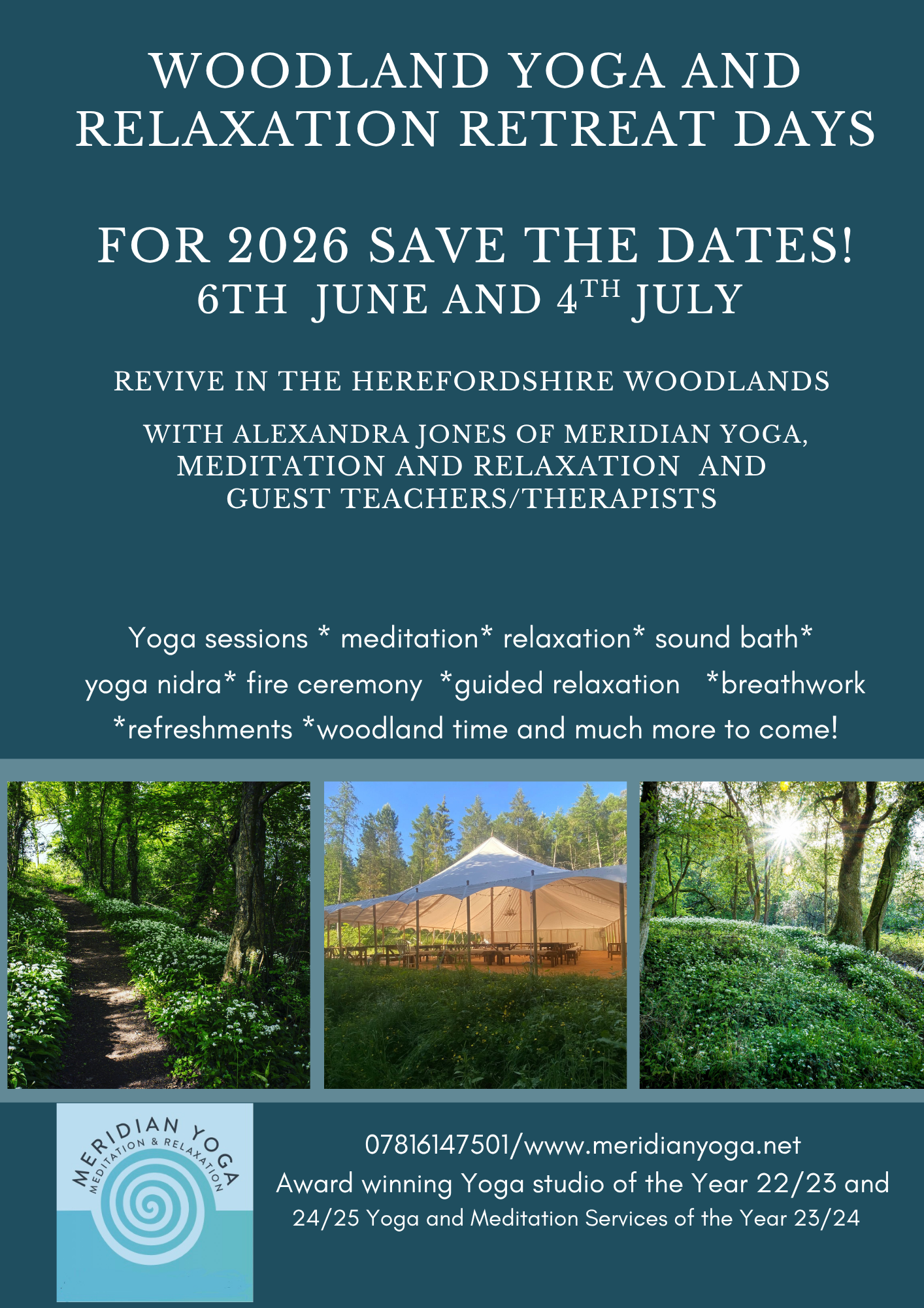 On this woodland day retreat join me for a magical day in a wonderful woodland with great facilities, surrounded by natures finest gifts at Woodland Tipis and Yurts in the Herefordshire countryside. Sign up to a day of Yoga practices in the large marquee, walking meditations in the 12 acre woodlands.
